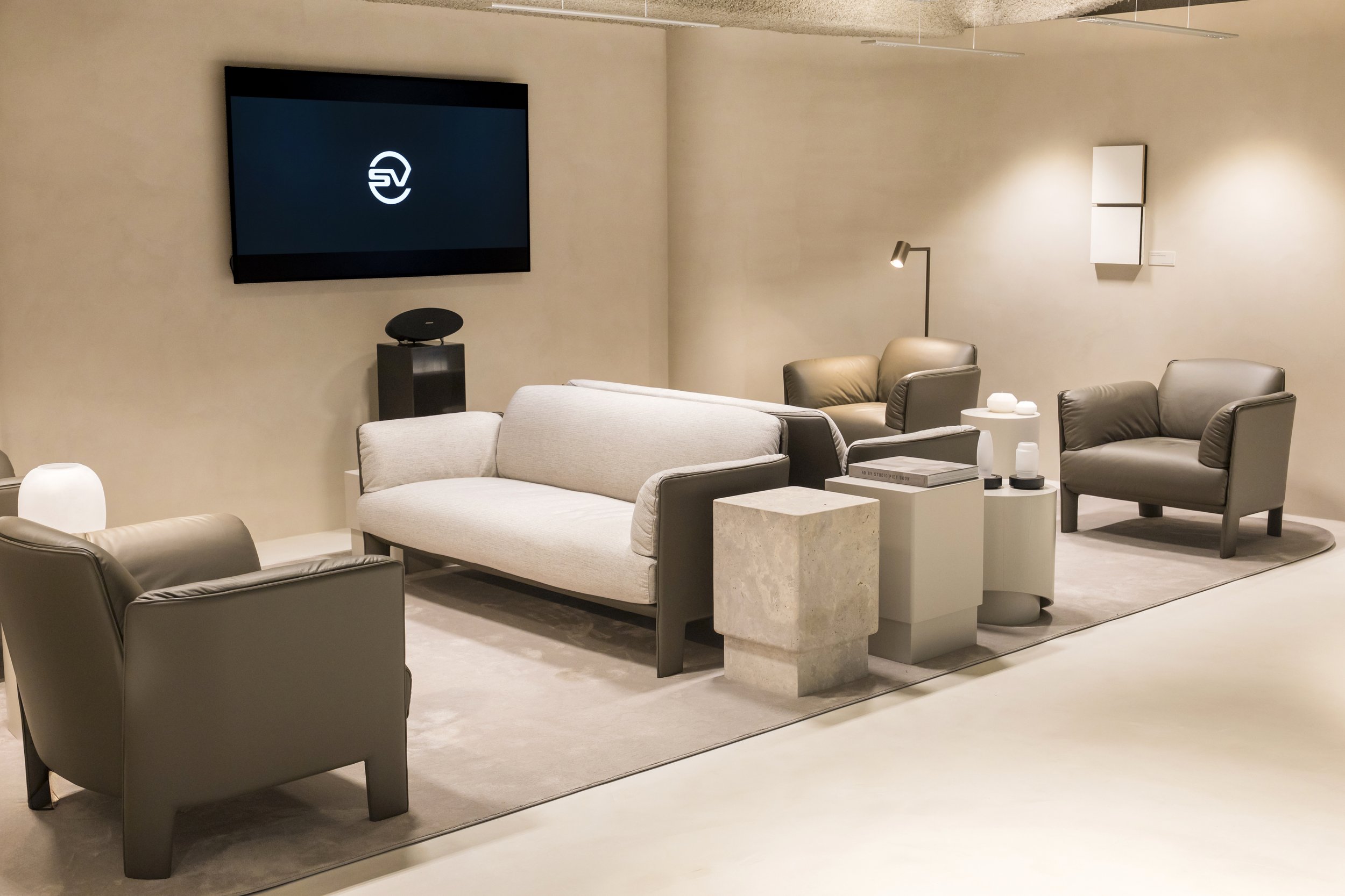 Le lieu est grand, lumineux, parfaitement fini. Tout est propre, sobre, élégant. On sent tout de suite que Range Rover a voulu créer un environnement cohérent avec ses modèles les plus exclusifs. L’endroit a été imaginé par Piet Boon, architecte d’intérieur néerlandais, et ça se ressent dans la pureté des lignes, la simplicité et ce côté chaleureux sans jamais être ostentatoire.