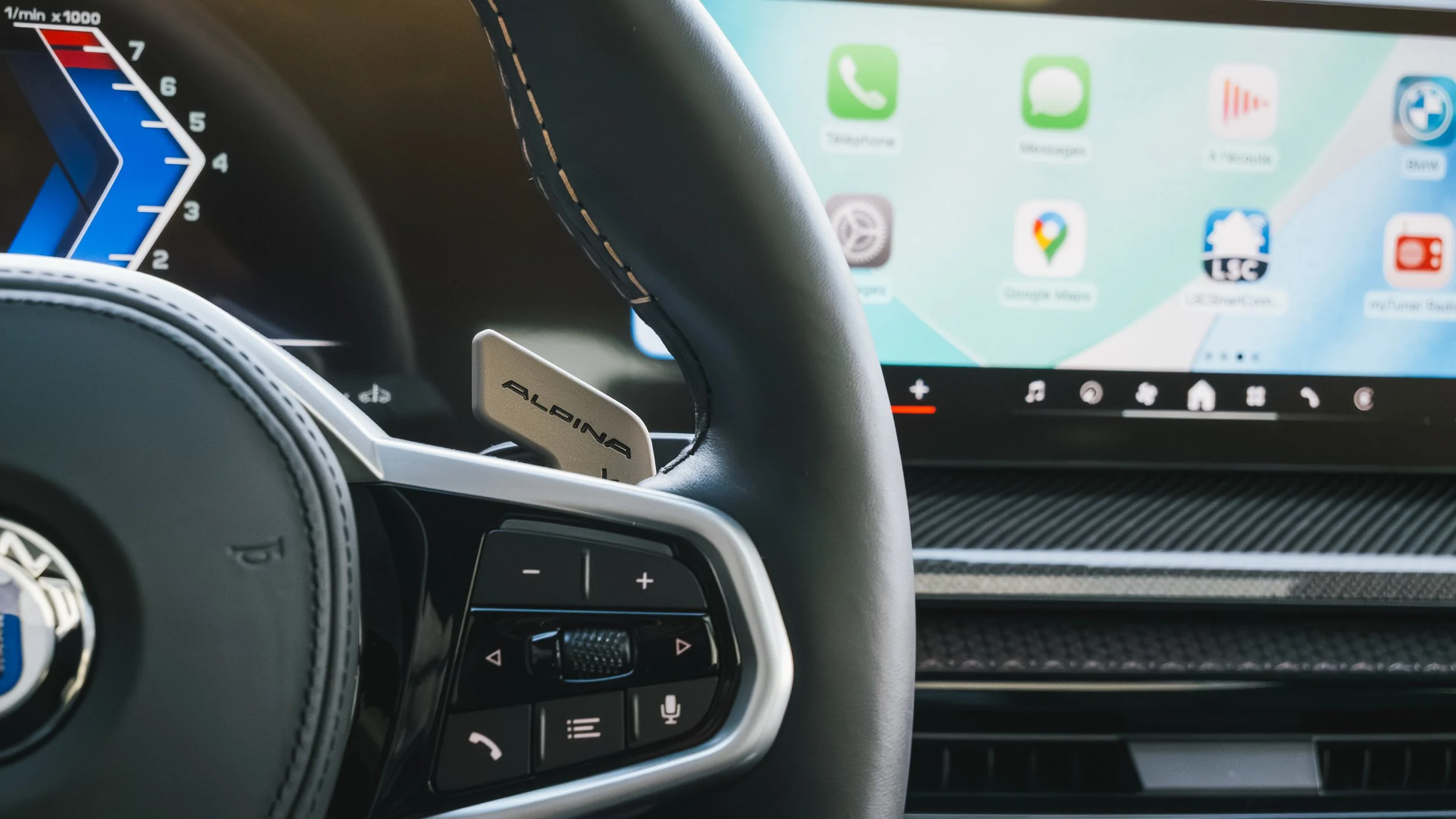 La transmission intégrale xDrive envoie tout ça aux quatre roues via une boîte automatique ZF à huit rapports emprunté à la M5 et son V8 afin de pouvoir encaisser tout ce couple sans broncher. Autrement dit, c'est une boîte pensée pour de plus gros moteurs avec plus de couple, plus souple et plus durable que celle de la M3, et Alpina a fait le choix de cette robustesse pour une raison très claire, avoir une transmission ultra réactive tout en restant d'une douceur déconcertante.