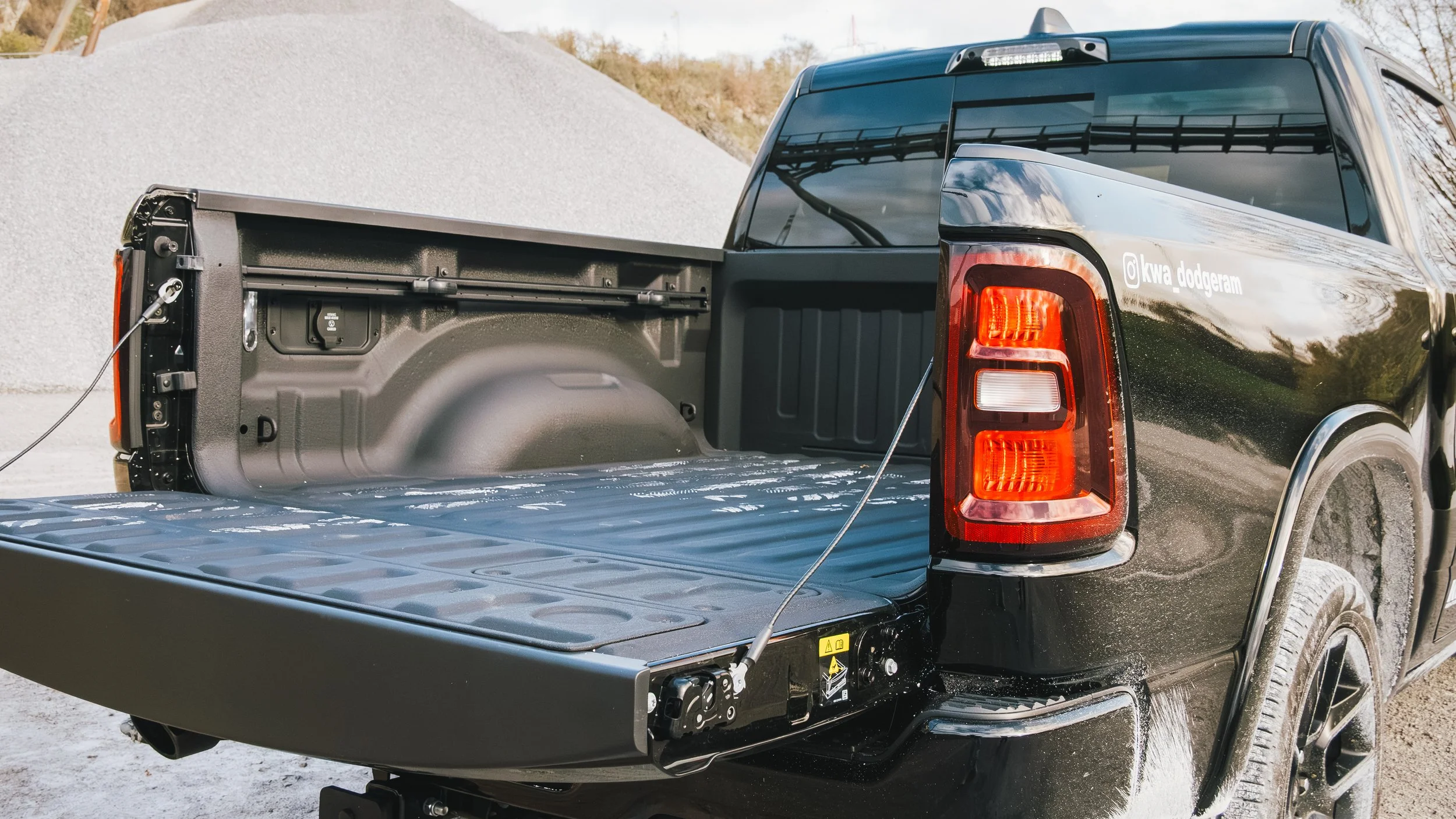 Là où le RAM 1500 reprend tout son sens, c’est dans son utilité pure. La benne mesure 1,71 mètre de long pour 1,68 mètre de large, peut encaisser un peu plus d’une tonne de charge, et le RAM est capable de tracter jusqu’à 3,5 tonnes en Europe. Ici, rien n’est pensé pour faire joli sur Instagram. Même si, soyons honnêtes… il y sera quand même.