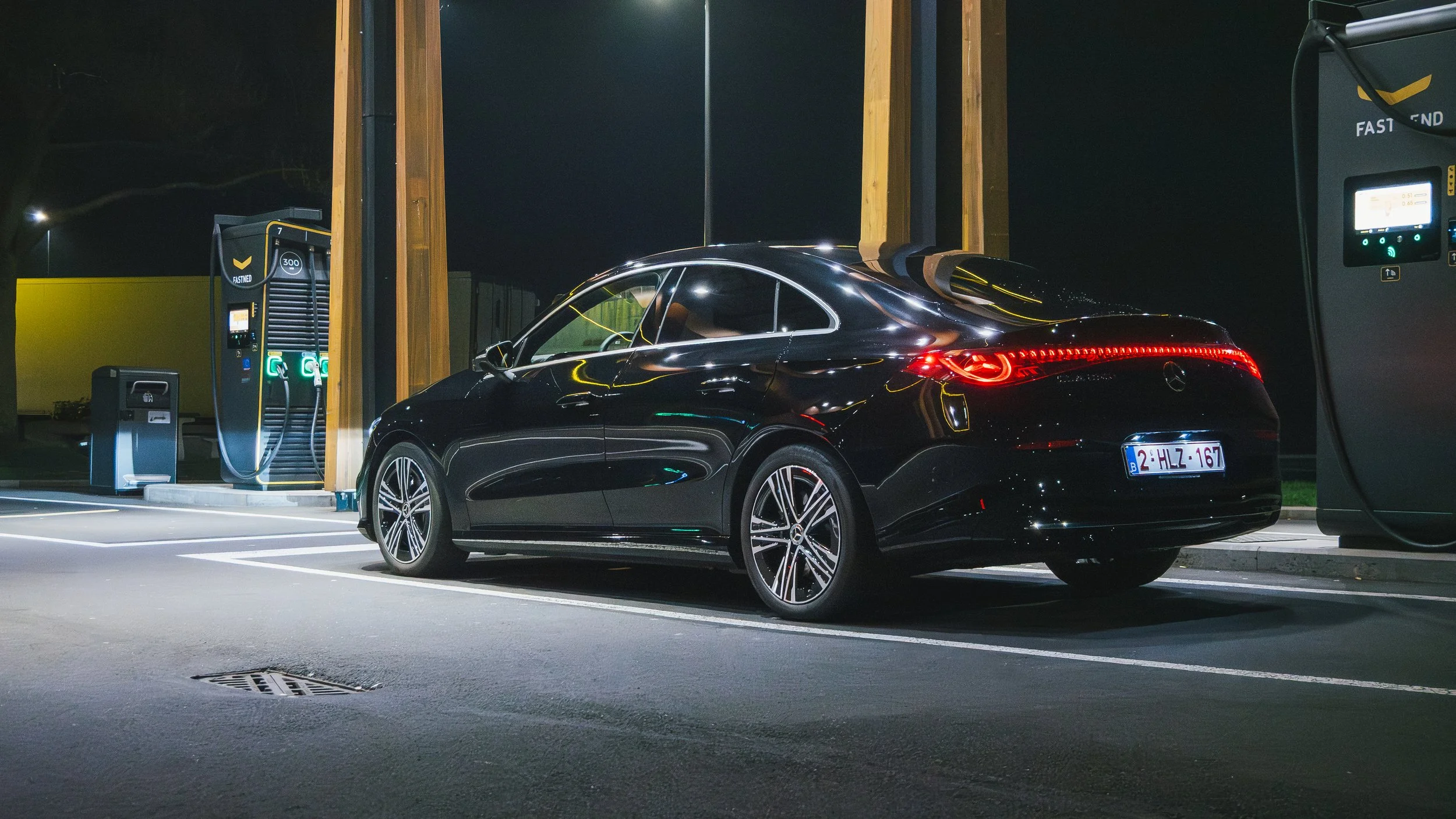 Et c'est là que l'efficience prend tout son sens. Sur notre essai, la consommation tournait autour de 15 kWh/100 km, un chiffre honnête, voire excellent pour une berline de ce gabarit. Mercedes annonce plus de 700 km d’autonomie, et pour une fois, ça ne semble pas irréaliste. En usage autoroute à 120 km/h, l'autonomie réelle se situe plutôt entre 550 et 600 km, largement suffisant pour aborder un long trajet sans calculer chaque arrêt. Alors forcément, ça change la donne. Là où beaucoup d’électriques restent encore limitées sur les longs trajets, cette CLA permet d’envisager de vraies distances sans devoir s’arrêter en permanence. La recharge quant à elle est rapide, compter une vingtaine de minutes pour recharger de 10 à 80% sur une borne 300kW.